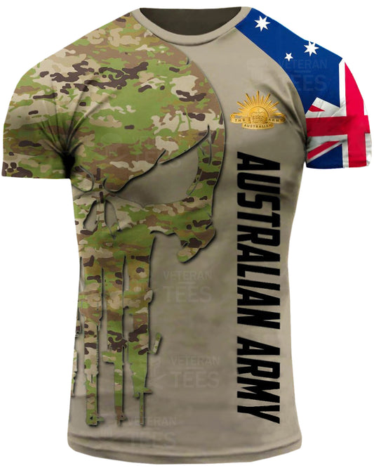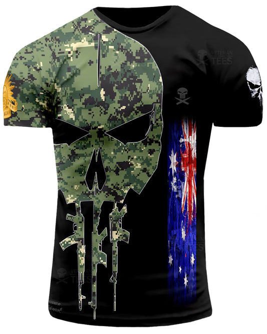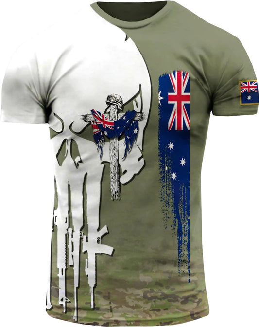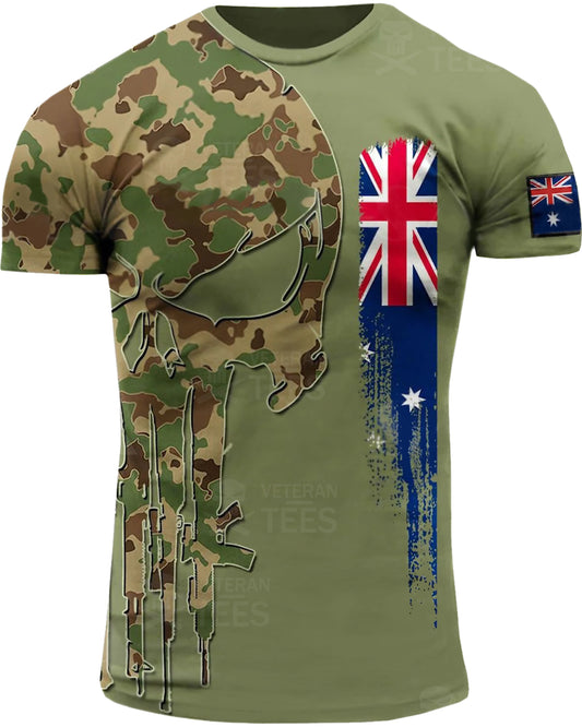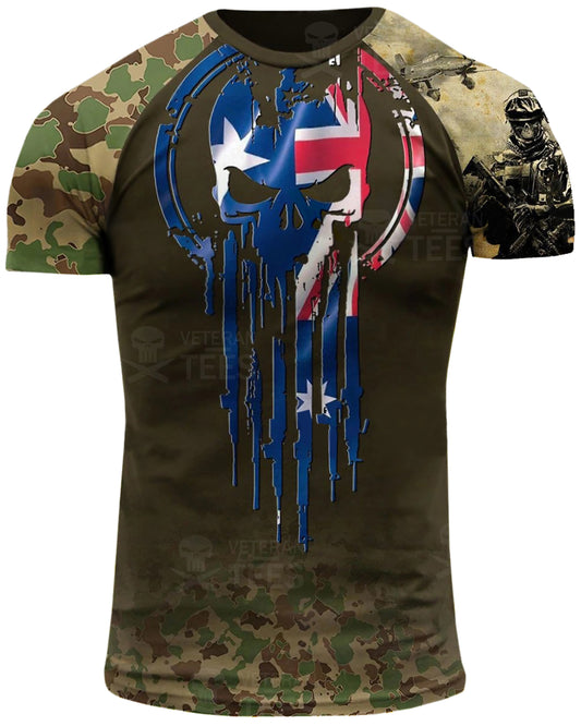 Australia Army Australian Veteran T-Shirt Combat Military Camouflage T Shirt Short Sleeve Skull T Shirt Size XXS - 4XL Black AU08