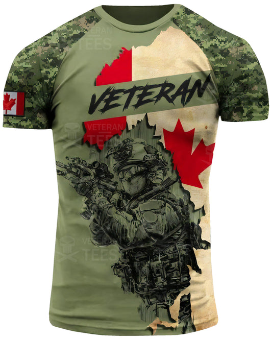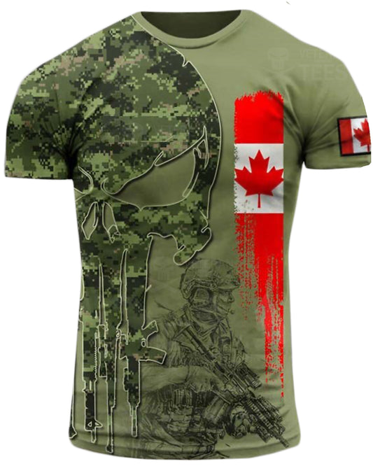 Canada Army Canadian Veteran T-Shirt Combat Military Camouflage T Shirt Regular Fit Short Sleeve Size 2XS-4XL Green CA01
