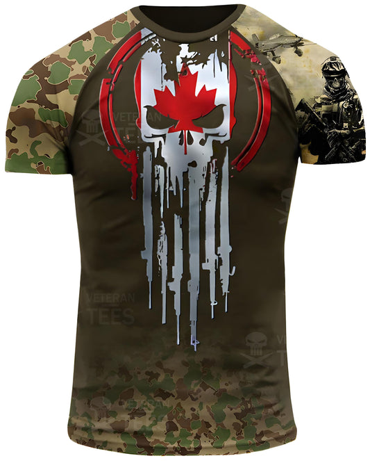 Canada Army Canadian Veteran T-Shirt Combat Military Camouflage T Shirt Regular Fit Short Sleeve Size 2XS-4XL Green Black CA02