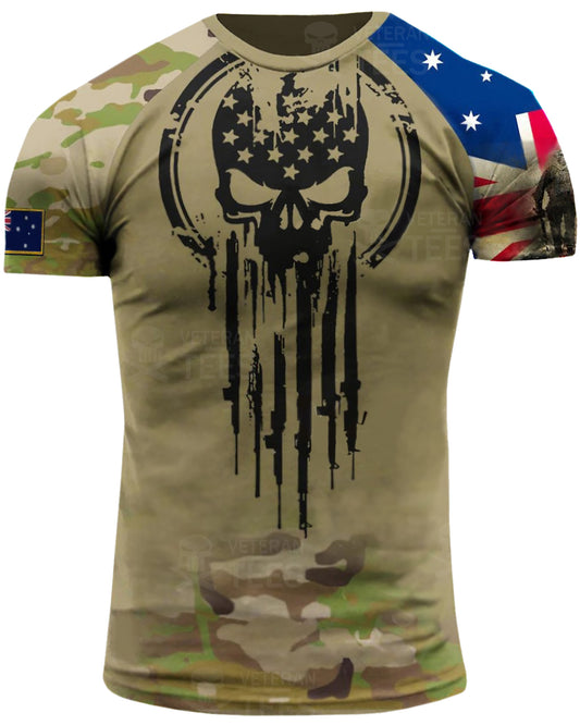 Australia Army Australian Veteran T-Shirt Combat Military Camouflage T Shirt Short Sleeve Skull T Shirt Size XXS - 4XL Beige AU09