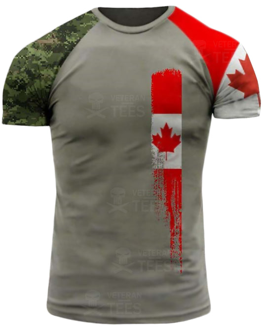 Canada Army Canadian Veteran T-Shirt Combat Military Camouflage T Shirt Regular Fit Short Sleeve Size 2XS-4XL Grey Green CA06