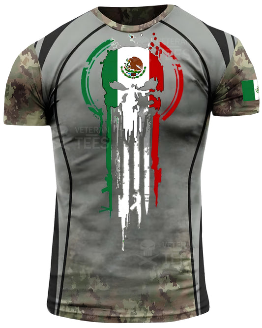 México Ejército Veterano Mexicano Camiseta Combate Militar Camuflaje Calavera Camiseta Regular Fit Manga Corta Tamaño 2XS-4XL Gris MX02