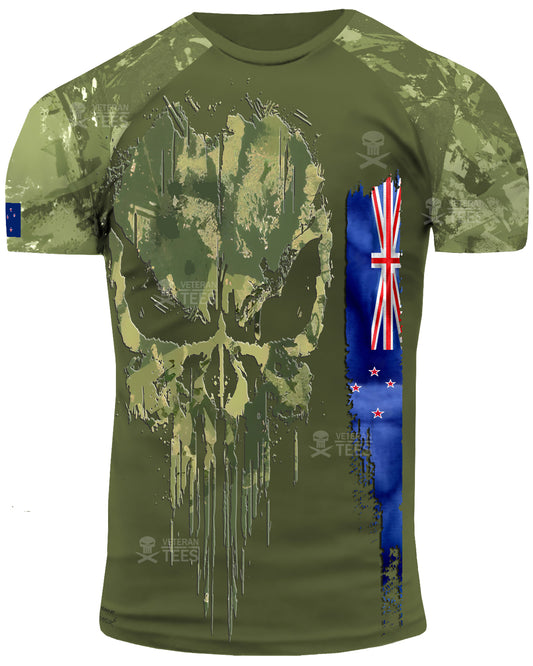 New Zealand Army Veteran T-Shirt Combat Military Camouflage T Shirt Short Sleeve Skull T Shirt Size XXS - 4XL Olive NZ01