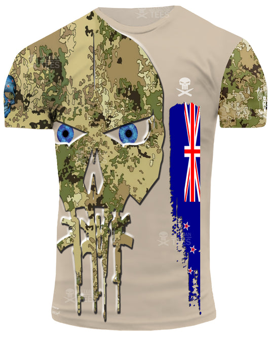 New Zealand Army Veteran T-Shirt Combat Military Camouflage T Shirt Short Sleeve Skull T Shirt Size XXS - 4XL Beige NZ02