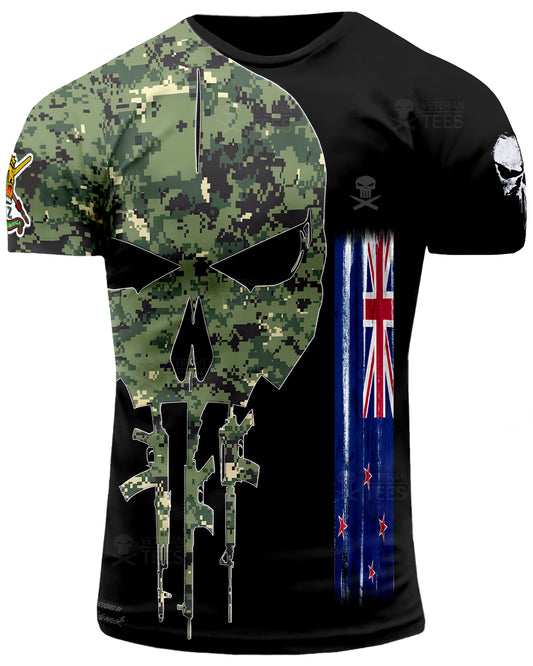 New Zealand Army Veteran T-Shirt Combat Military Camouflage T Shirt Short Sleeve Skull T Shirt Size XXS - 4XL Black NZ03