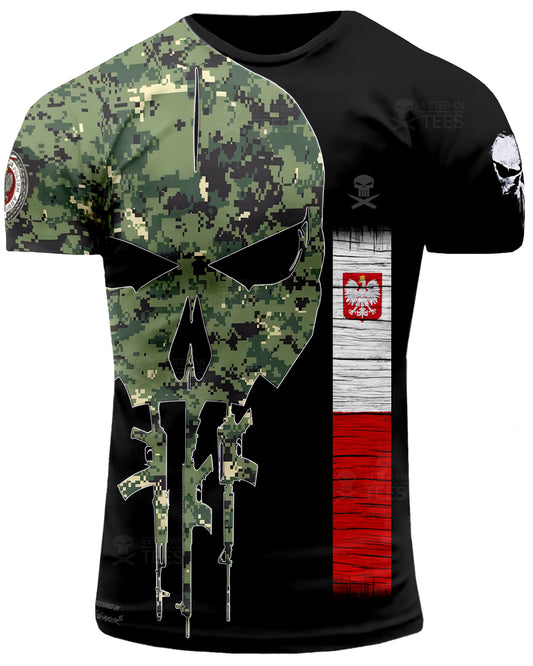 Poland Army Polish Veteran T-Shirt Combat Military Camouflage T Shirt Short Sleeve Skull T Shirt Size XXS - 4XL Black PL08