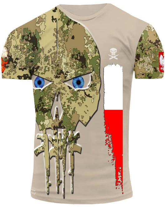 Poland Army Polish Veteran T-Shirt Combat Military Camouflage T Shirt Short Sleeve Skull T Shirt Size XXS - 4XL Light Beige PL09