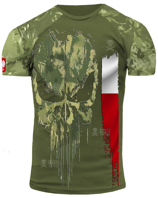Poland Army Polish Veteran T-Shirt Combat Military Camouflage T Shirt Short Sleeve Skull T Shirt Size XXS - 4XL Olive PL10