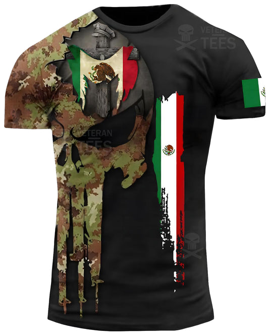México Ejército Veterano Mexicano Camiseta Combate Militar Camuflaje Calavera Camiseta Regular Fit Manga Corta Tamaño 2XS-4XL Negro MX01
